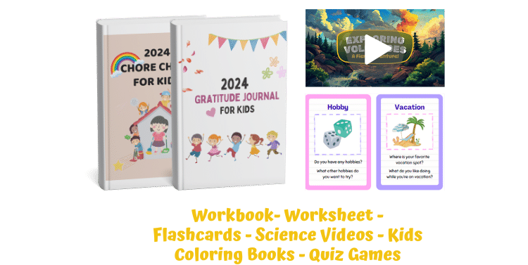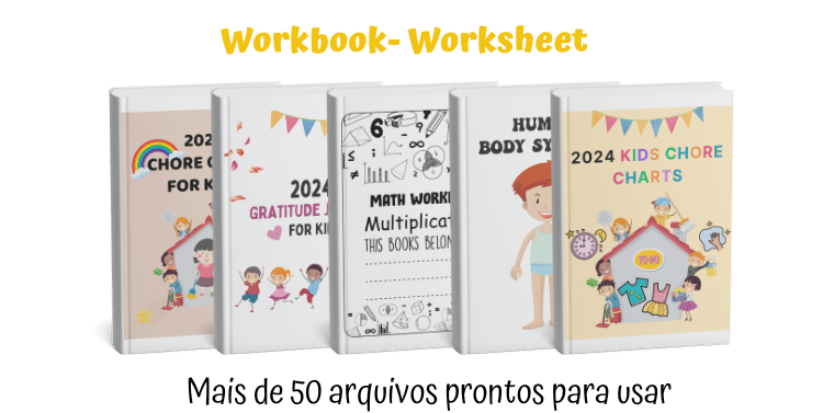 Uma série de materiais que vai ajudar e MUITO nas suas aulas: Workbook, WorkSheets, Flashcards, Science Videos, Kids Coloring Books e Quiz Games.